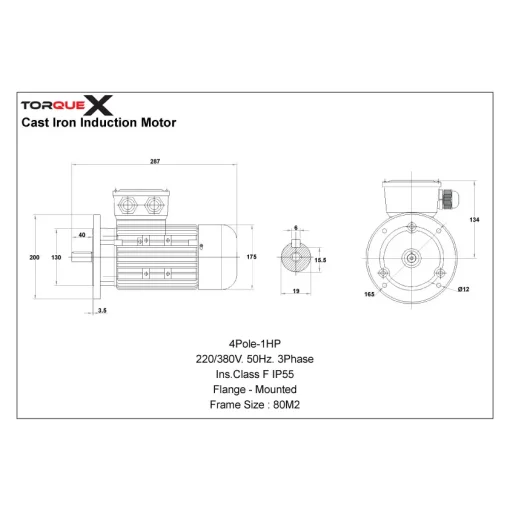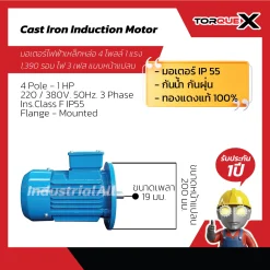 มอเตอร์ไฟฟ้าเหล็กหล่อ แบบหน้าแปลน 3 เฟส (สาย) 220/380V. 4 Pole (โพล) 1500 รอบ ขนาด 1 แรงม้า(1 HP)สามารถใช้งานภายนอกอาคาร