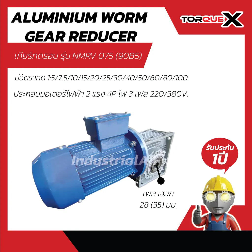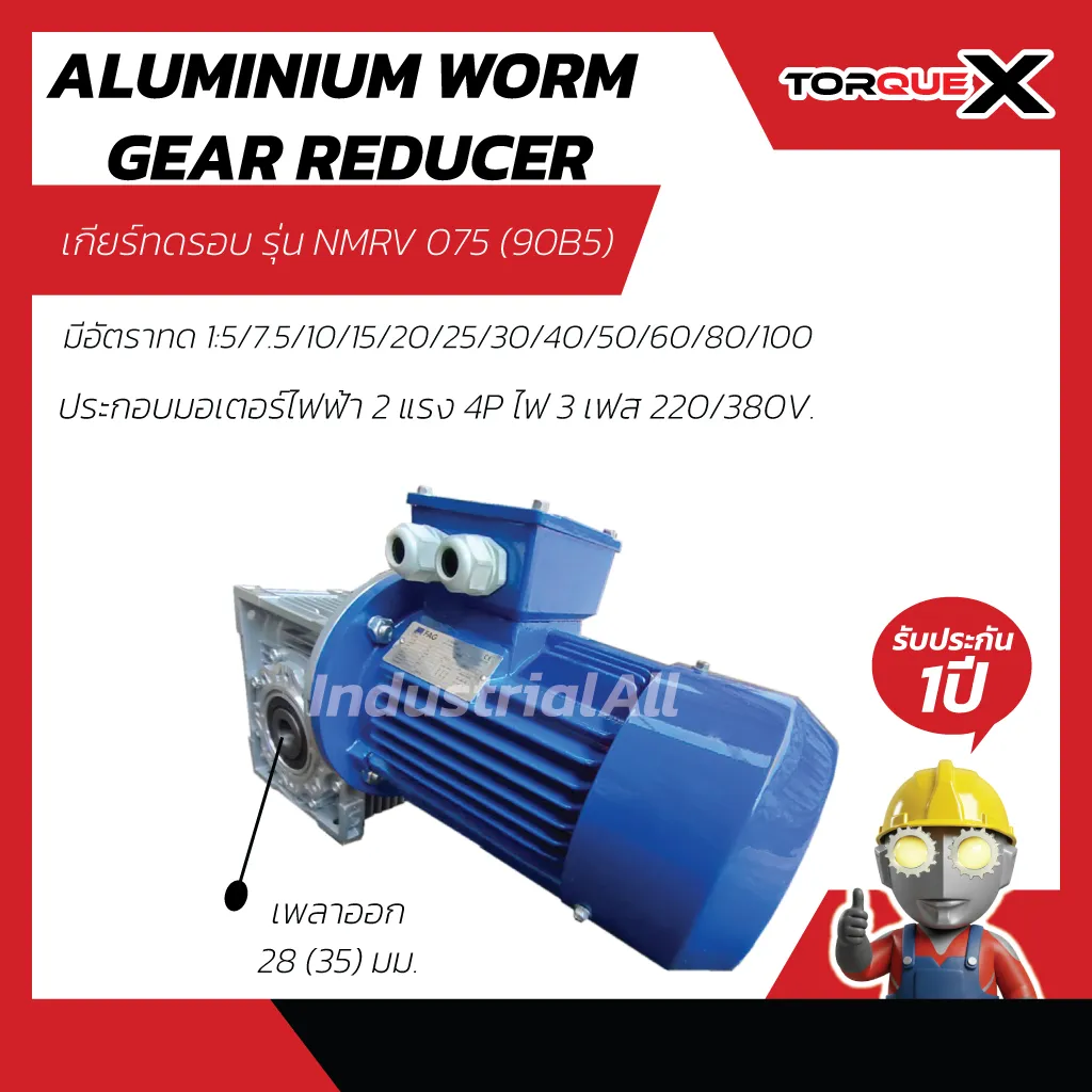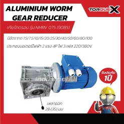 เกียร์ทดรอบ ยี่ห้อ TORQUE X เป็นเกียร์ทดรอบแบบ NMRV ใช้เฟืองทองเหลืองคุณภาพสูง แข็งแรง ทนทาน เหมาะกับงานอุตสาหกรรมหนัก เบา ทุกประเภท ใช้ลดรอบมอเตอร์และเพิ่มแรงบิด ลูกค้าสามารถเลือกอัตราทดได้ 1:5 – 1: 100 เสื้อเกียร์ทำจากอลูมิเนียม ผลิตด้วยเทคโนโลยีคุณภาพสูงมาตราฐานโลก ทุกชิ้นส่วนของ TORQUE X ถูกคัดสรรมาเพื่อให้ตรงกับความพึงพอใจของลูกค้า ไม่ว่าจะเป็นการหล่อ เฟืองตัวหนอน ตลับลูกปืน ซีลกันน้ำมัน รูเติมน้ำมัน รูระบายอากาศ และองค์ประกอบผลิตเกียร์ เพื่อการใช้งานที่คงทน ยาวนานตามประเภทของแต่ละอุตสาหกรรม เกียร์ทดรอบ เป็นเกียร์ที่มีการเติมน้ำมันแล้ว ทางรูเติมน้ำมันด้านบน